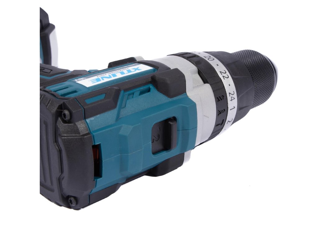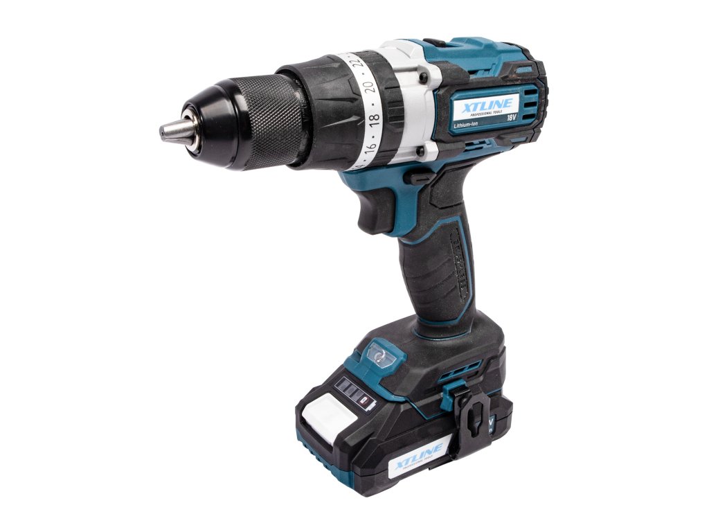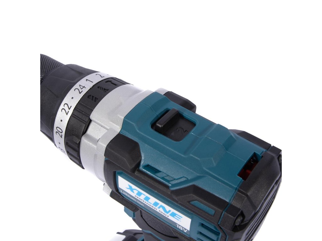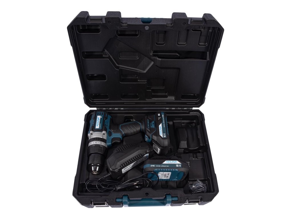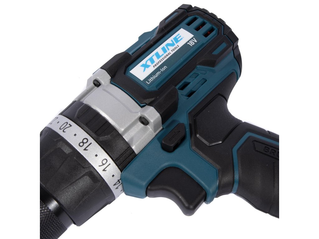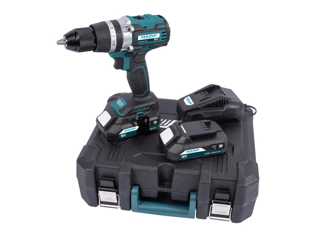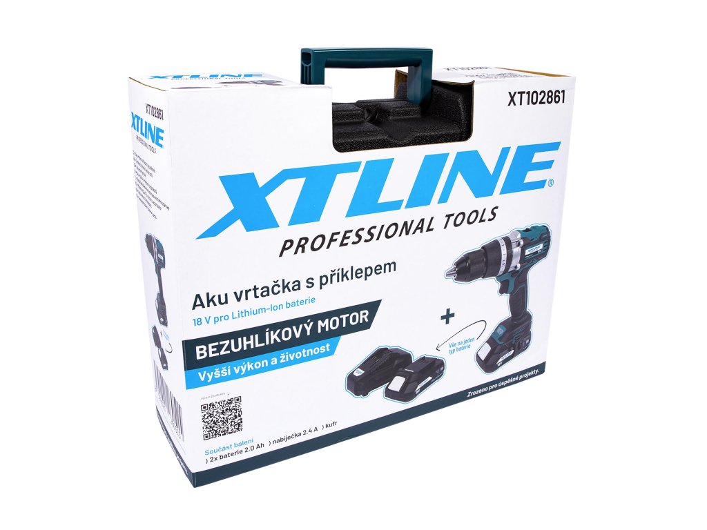 XTLINE Aku vrtačka s příklepem bezuhlíková 18 V, 70 Nm + 2 baterie 2.0 Ah + nabíječka 2.4 A