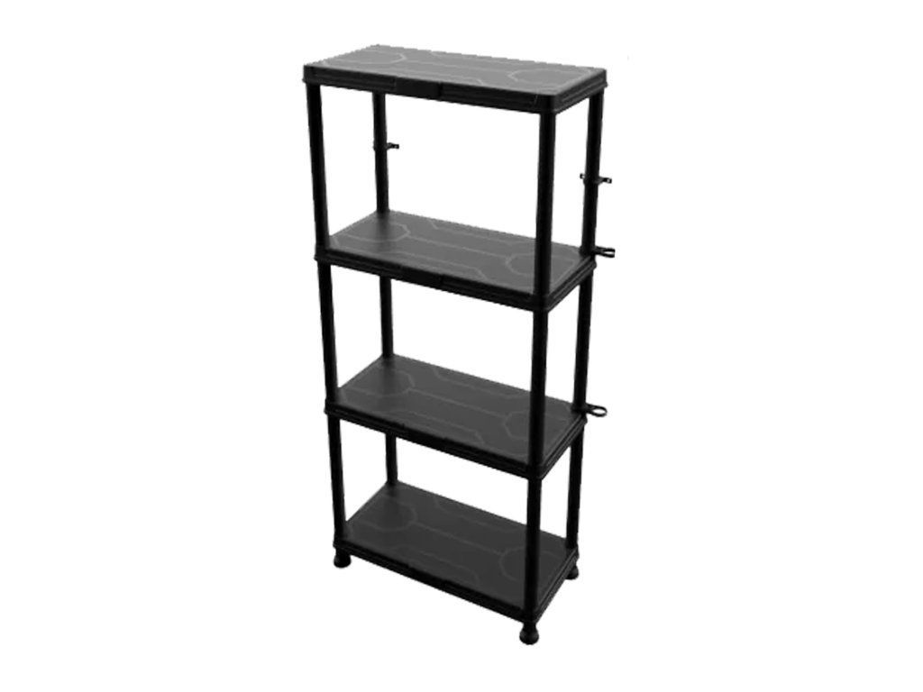 Lehký a pevný skladový regál z recyklovaného plastu je praktickým řešením pro sklad, sklep i technické prostory. Každá police unese až 25 kg. Montáž je rychlá a probíhá bez použití nářadí. Plastové provedení je odolné vůči vlhkosti, takže nedochází ke korozi ani bobtnání jako u kovových či MDF regálů. Regál lze pomocí přiložených objímek upevnit ke stěně a jednotlivé moduly je možné mezi sebou kombinovat.