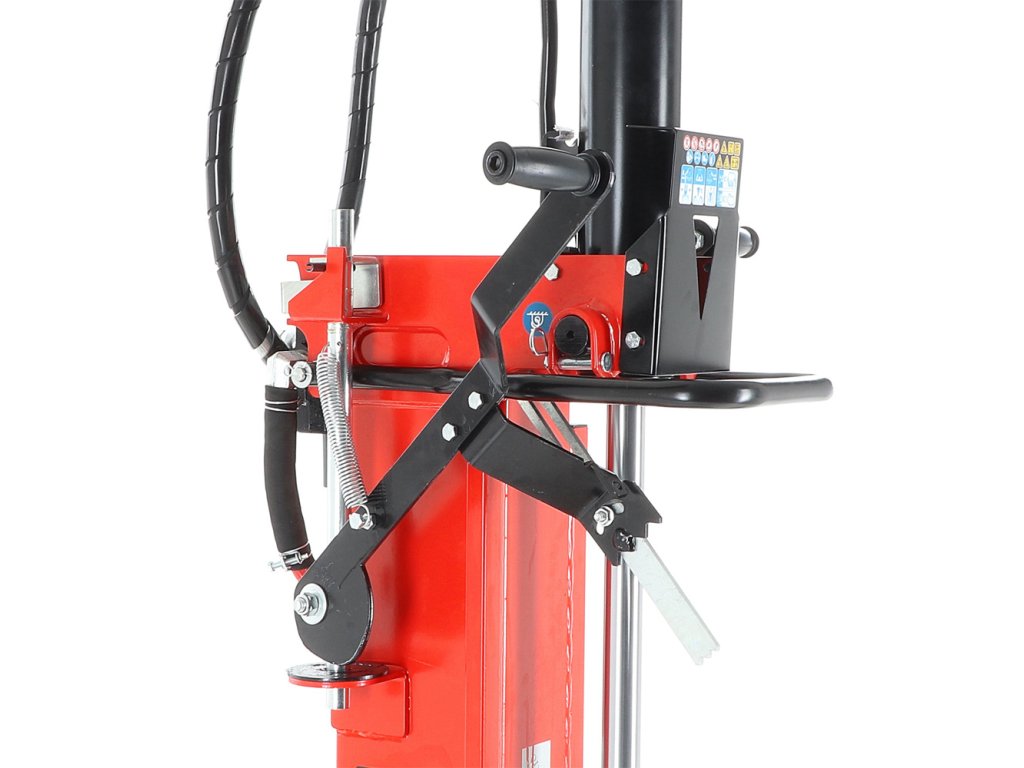 Štípačka VeGA LV1410PRO VARIO splňuje novou normu EU pro bezpečnost práce. Ke standardnímu obouručnímu ovládání tak přibylo nové, větší ochranné rameno a transportní kolo u vodicích rukojetí pro snadný převoz štípačky. Levá ovládací páka je vybavená zařízením pro zajištění stability polena.