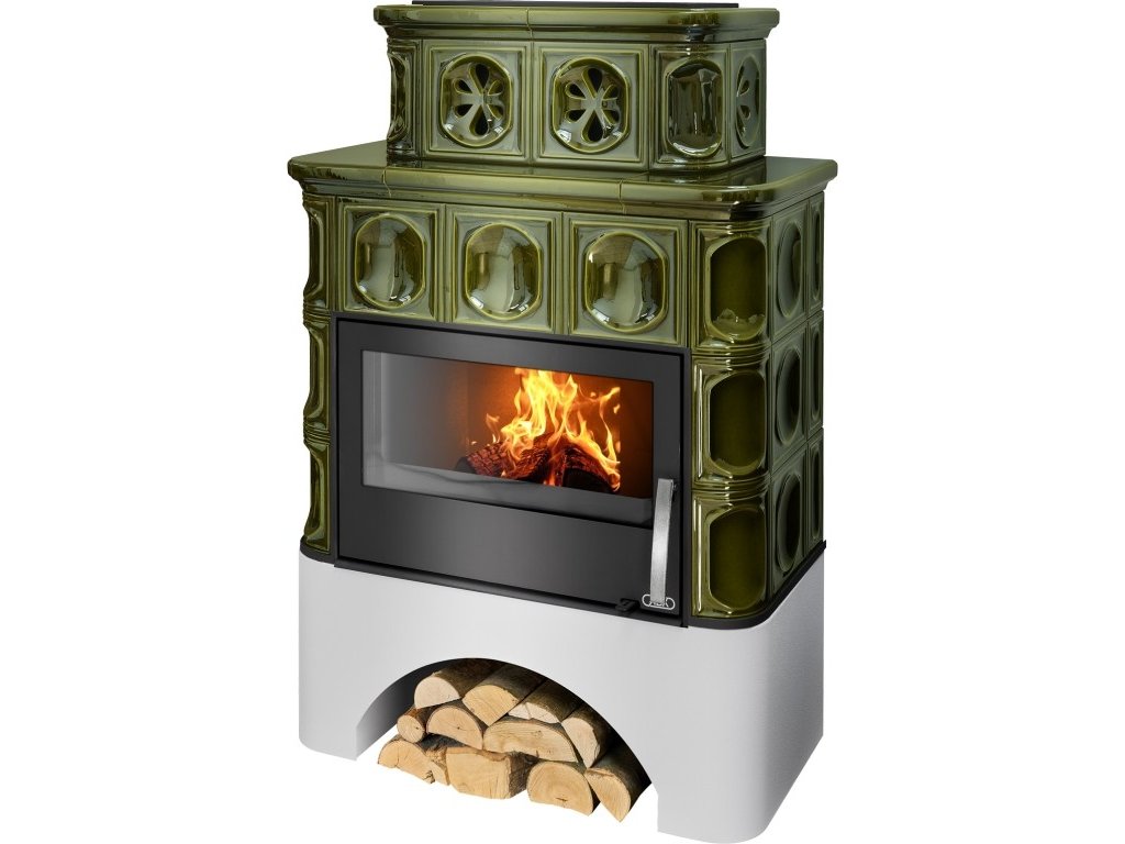 ABX KARELIE P TV kachlová kamna 7,3-16,5kW, s výměníkem, rovný sokl, zelená