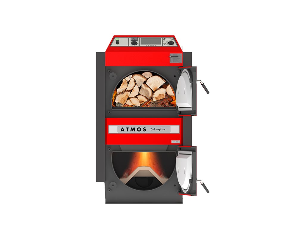 Nejprodávanější kotle Dřevoplyn se vyznačují velkým přikládacím prostorem. Plameny do spodní spalovací komory proudí z horního topeniště zplynovací tryskou s otvory pro přívod vysoce předehřátého sekundárního vzduchu. Dobrou účinnost kotle zajišťuje zadním spalinovým kanálem s výměníkem a odtahovým ventilátorem pro odvod spalin do komína. Těleso kotle ATMOS Dřevoplyn je vyrobeno jako svařenec z kvalitních ocelových plechů o tloušťce 8 až 3 mm.