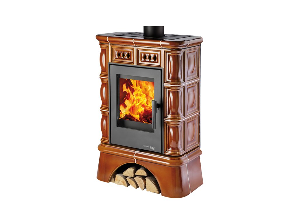 Kachlová kamna Haas+Sohn Faro v černém provedení s kachlemi v odstínu medovník a kachlovým soklem představují spojení tradičního designu s moderními technologiemi, ideální pro efektivní a stylové vytápění vašeho domova.