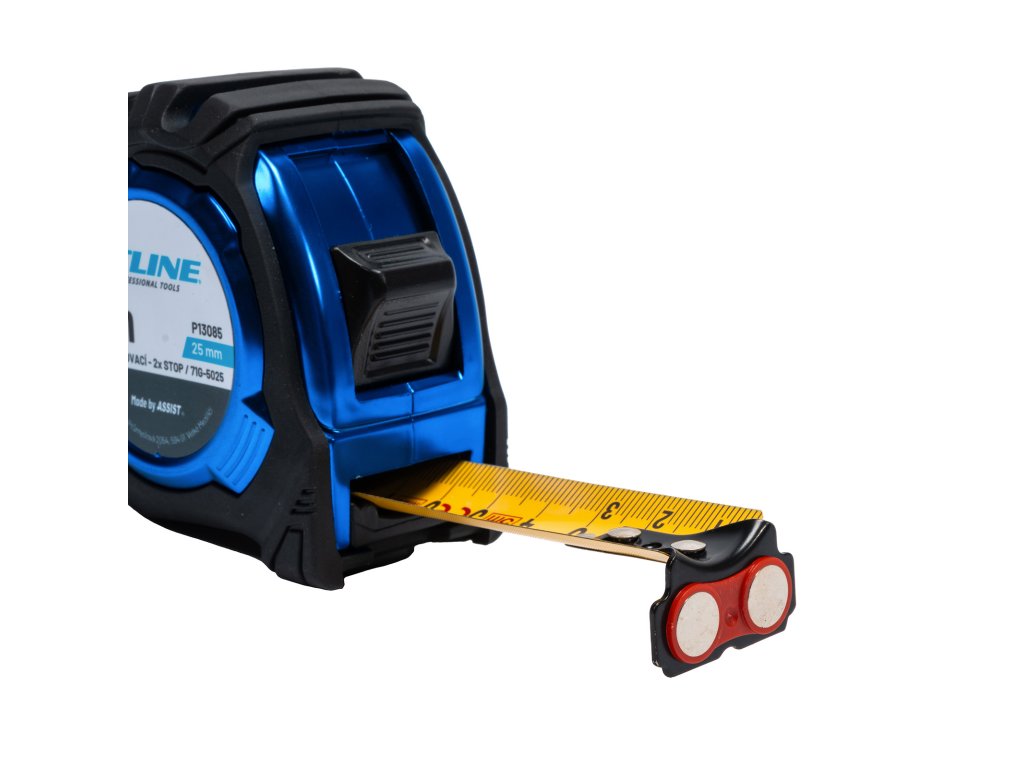 Svinovací metr s vysoce přesnou páskou. Díky použití výrobních certifikovaných tiskových strojů tato páska vyhovuje certifikátům MID (NWML 0126-17) třída II a JIS třída I. Páska z uhlíkové oceli je silnější než u jiných metrů, což přímo ovlivňuje její životnost. Další dva šrouby na pouzdře pro ještě pevnější a kvalitnější ochranu pásky. Otřesuvzdorné jádro z ABS materiálu. Metry prochází kontrolami kvality, např. pády z výšky apod. Páska metru je potažená nylonovým pláštěm odolným proti škrábancům. ABS pouzdro, pogumovaný obal a chromovaný pohyblivý háček připevněný 3 nýty.