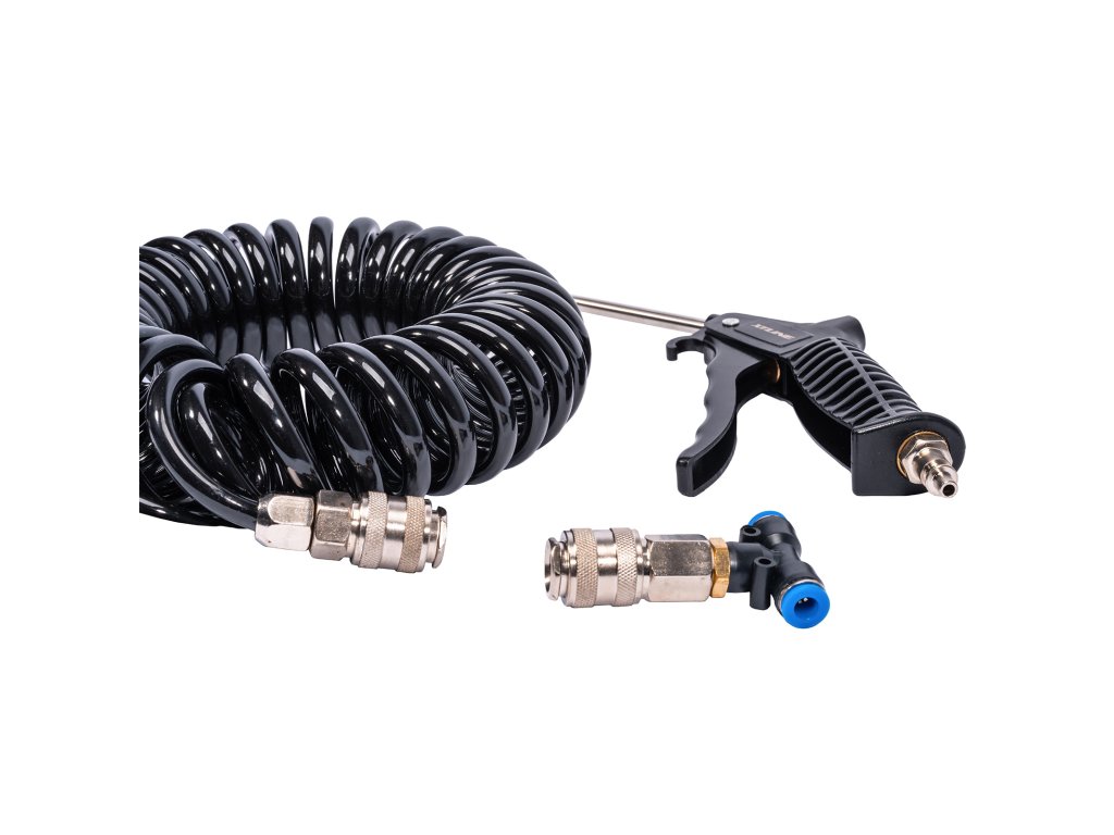 Kompletní sada pro čištění stlačeným vzduchem kompresoru. Hadice včetně rychlospojek a příslušenství.