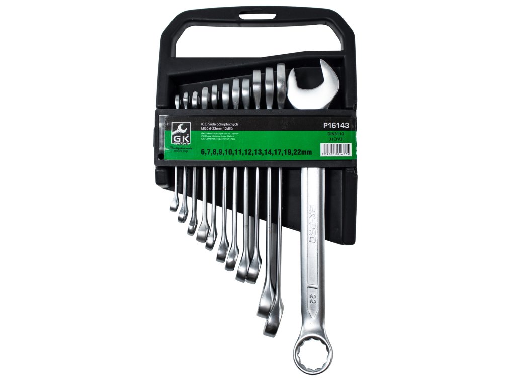 GK TOOLS Sada očkoplochých klíčů, matné 12 dílů | 6-22 mm, plastový držák