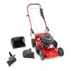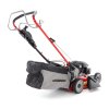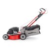 zadním deflektorem a má variabilní pojezd daný 7 rychlostní variátorovou převodovkou. Výhoda silného motoru o výkonu 6 HP a nože s velkými lopatami Vám perfektně sebere i přerostlou mokrou trávu. Pogumovaná sendvičová kola jsou uložena v oboustranných kuličkových ložiscích,