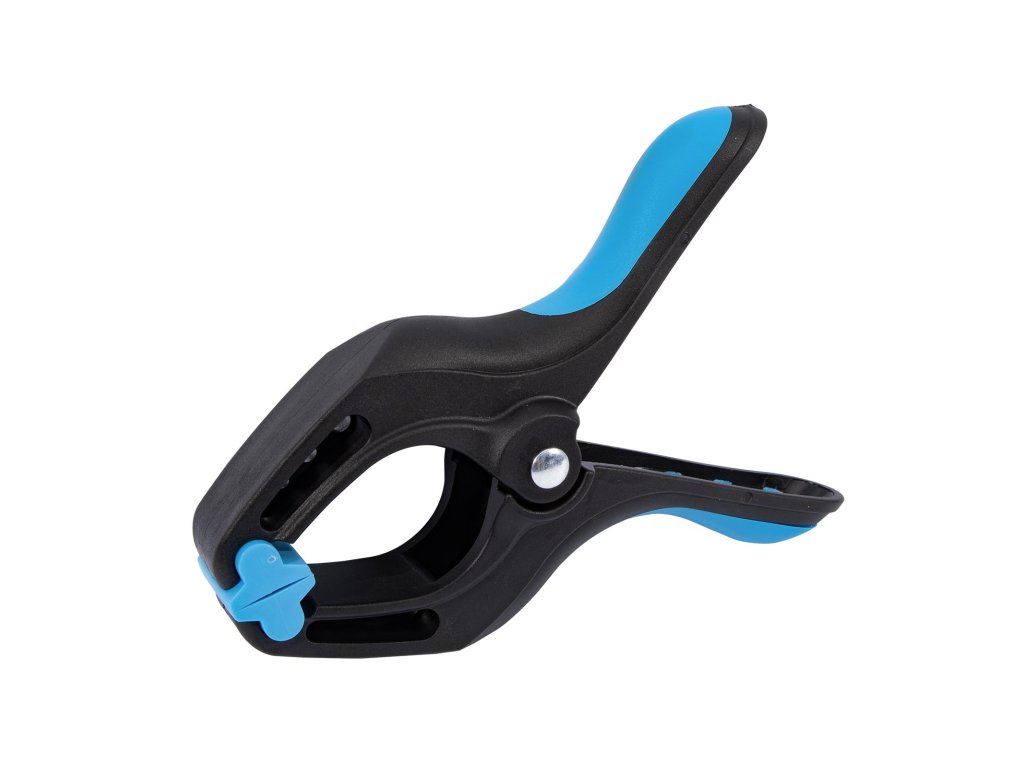 Jednoruční svěrka z kvalitního plastu je opatřená silnou pružinou. Pevná a odolná s rukojetí soft-grip pro komfortní uchopení. Pohyblivé, výkyvné čelisti se přizpůsobí i oblým předmětům. Vhodná k přidržení lepených částí, kabelů, lišt apod.
